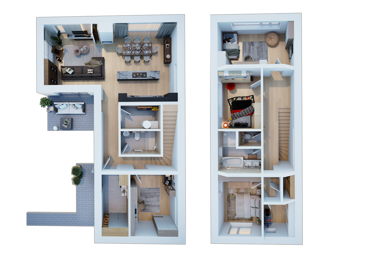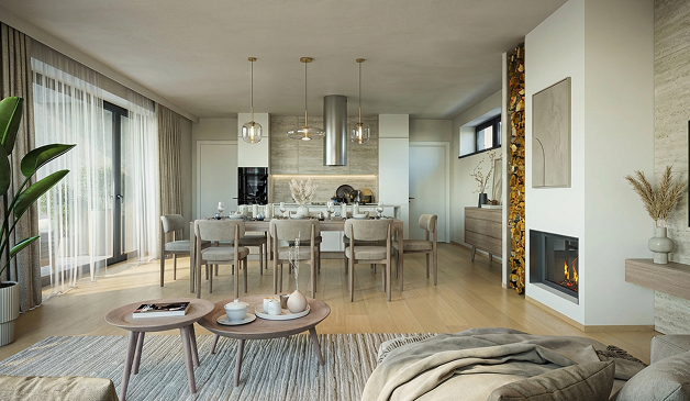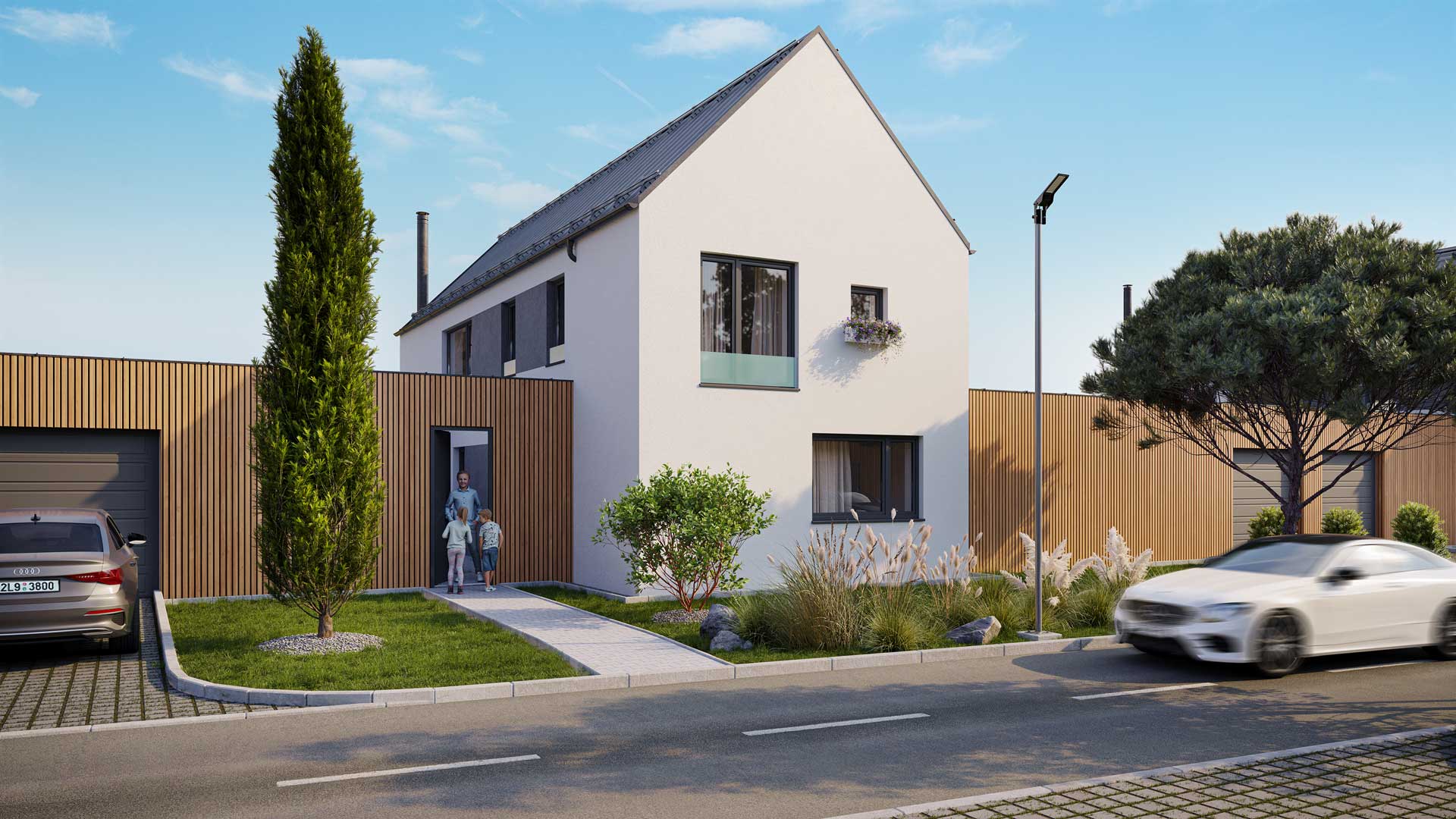 A2 je moderní domov navržený pro pohodlné rodinné bydlení. Nabízí velkorysou dispozici 5+kk s celkovou užitnou plochou 215 m². Hlavní obytné prostory jsou orientované do zahrady, což zajišťuje maximální světlo a soukromí.