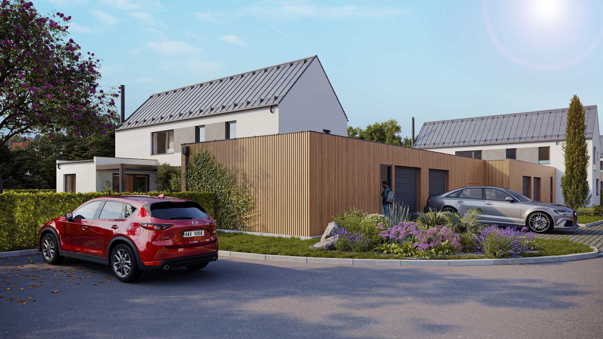 Rodinný dům A4 je moderní domov navržený pro pohodlné rodinné bydlení. Nabízí velkorysou dispozici 5+kk s celkovou užitnou plochou 227,6 m². Hlavní obytné prostory jsou orientované do zahrady, což zajišťuje maximální světlo a soukromí. Dům stojí na pozemku o výměře 942 m², který poskytuje dostatek prostoru pro zahradu, terasu a relaxaci. Parkování je řešeno garáží pro dva automobily a dalším krytým stáním.